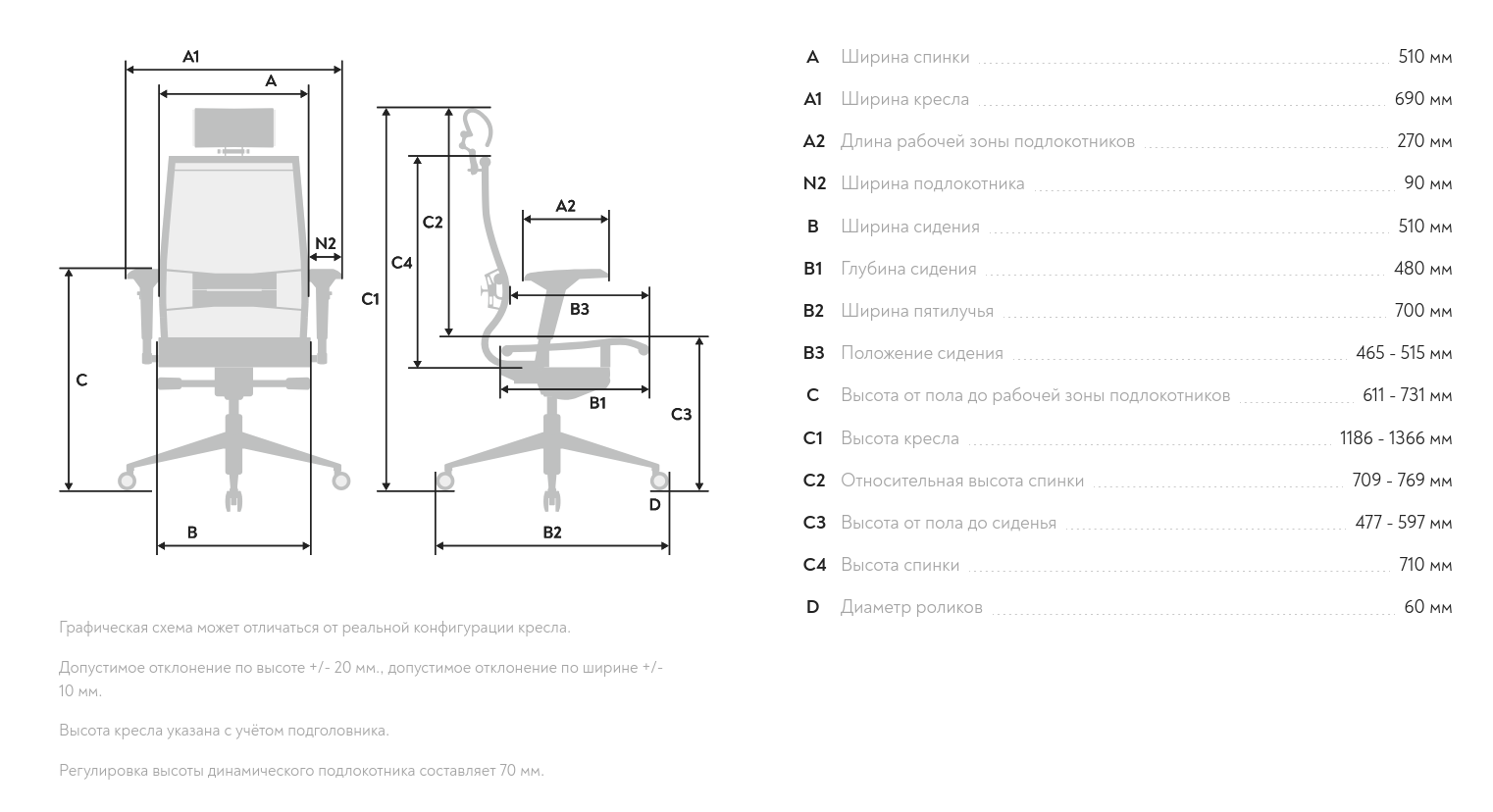 Размер кресла: L2